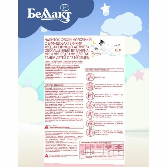 Напиток сухой молочный c бифидобактериями "Bellakt Immuno Аctive 3" обогащенный витаминами и минералами для питания детей с 12 месяцев, в картонной пачке, 400 гр.