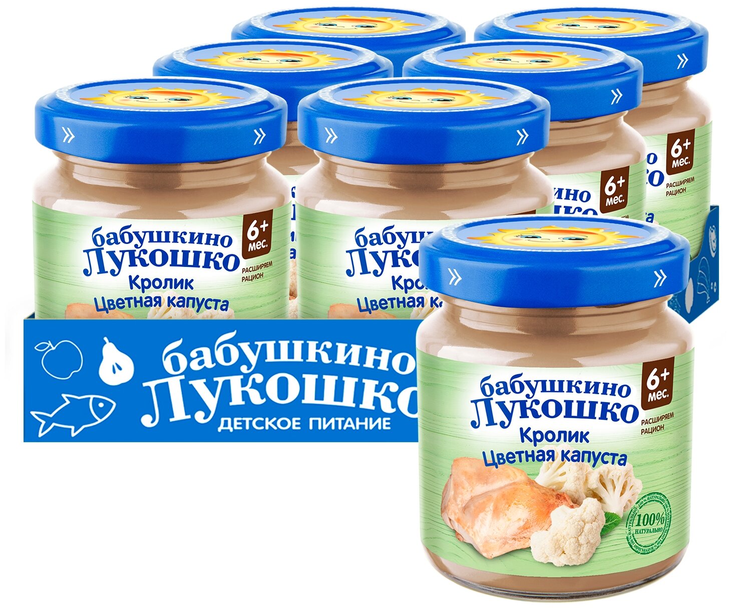 Пюре Бабушкино Лукошко Кролик-цветная капуста (с 6 месяцев), 100 г, 6 шт. интересное: