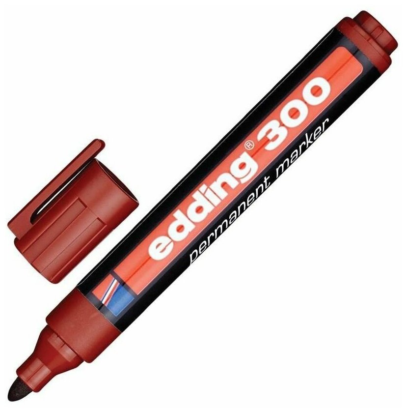 Маркер перманентный (нестираемый) EDDING "300", красный, круглый наконечник, 1,5-3 мм, E-300/2 (цена за 1 ед.товара)