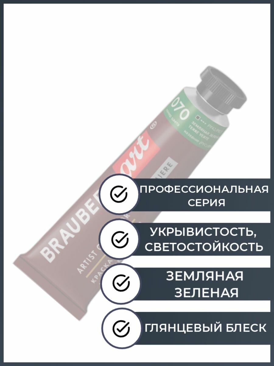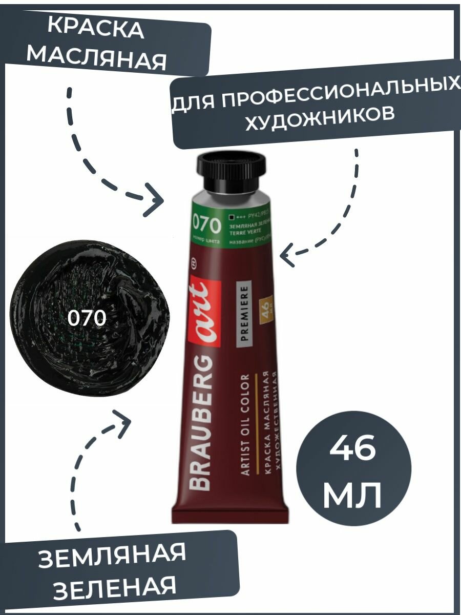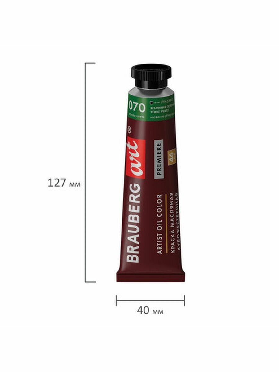 Краска масляная художественная BRAUBERG ART PREMIERE, 46 мл, проф. серия, земляная зеленая, 191433
