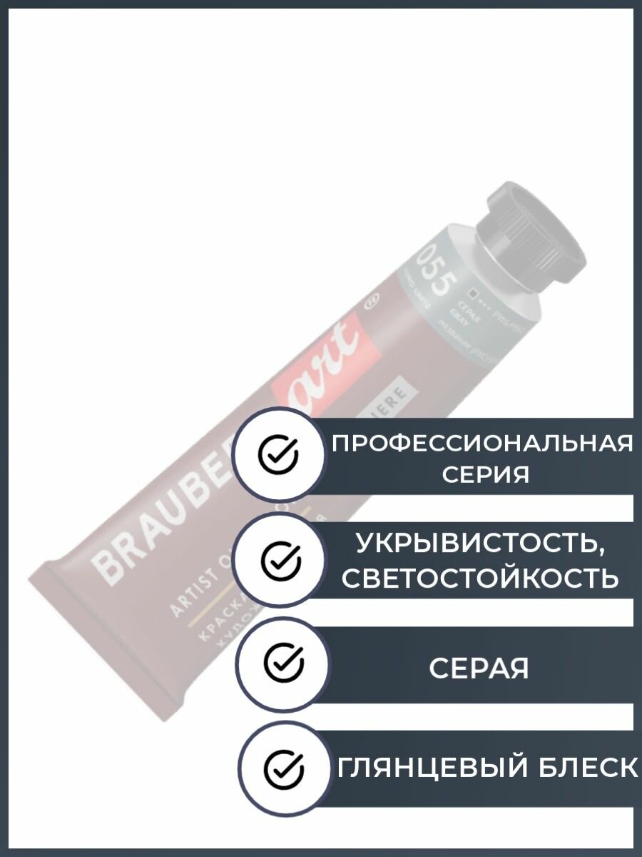Краска масляная художественная Brauberg ART PREMIERE, 46 мл, проф. серия, серая пейна, 191445