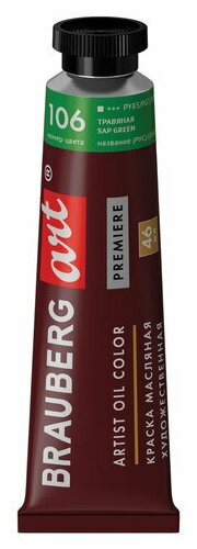 Краска масляная художественная BRAUBERG ART PREMIERE, 46 мл, проф. серия, земляная зеленая, 191433