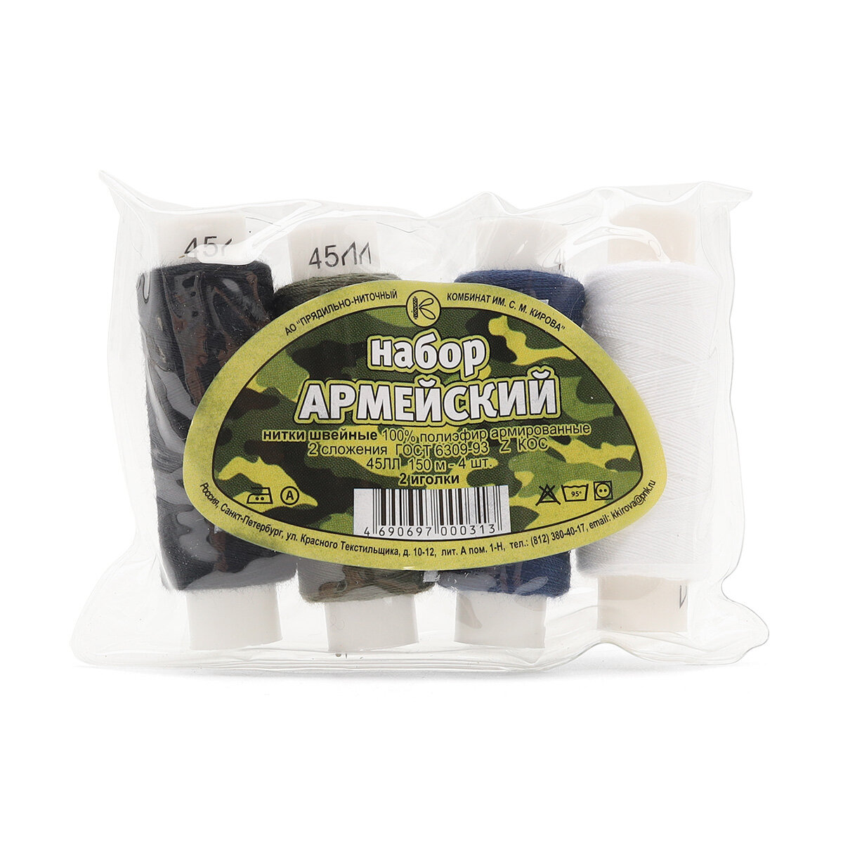 СохранитьНитки швейные армированные ПНК им. Кирова, набор 'Армейский', 45ЛЛ, 150 м, 4 шт интересное: