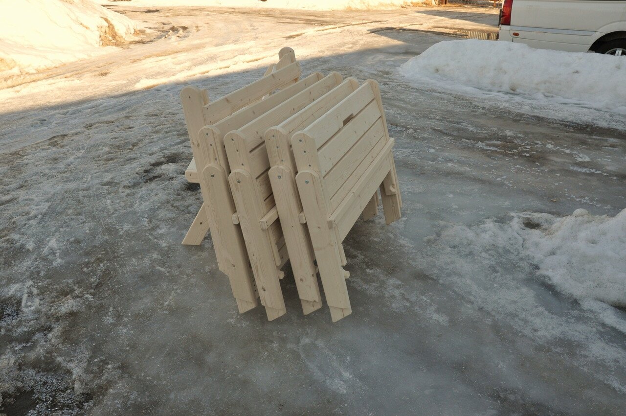 Купить Комплект (усиленный) банной мебели "на 8-10 человек" складной (Стол, 4 скамейки)