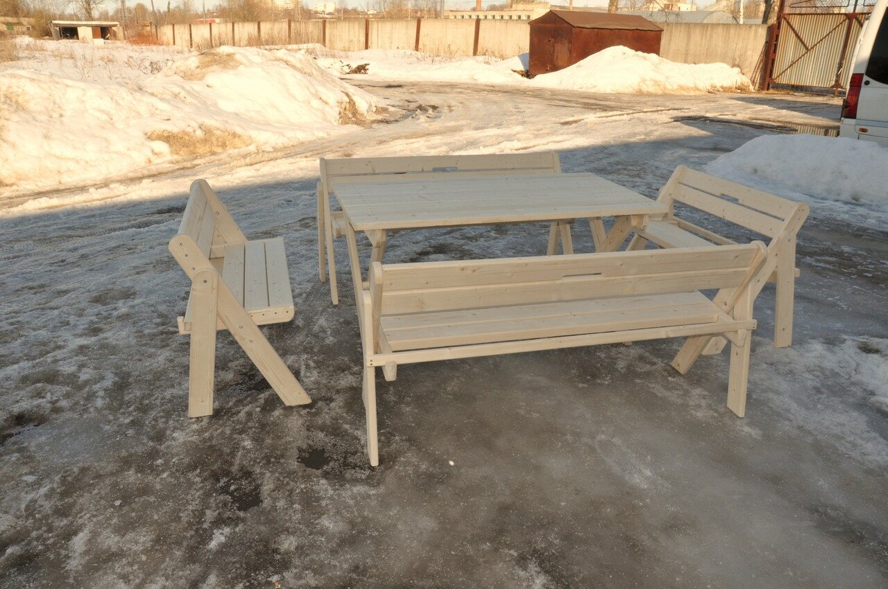 Комплект (Усиленный) банной мебели "на 10 человек" складной (Стол, 4 скамейки) интересное: