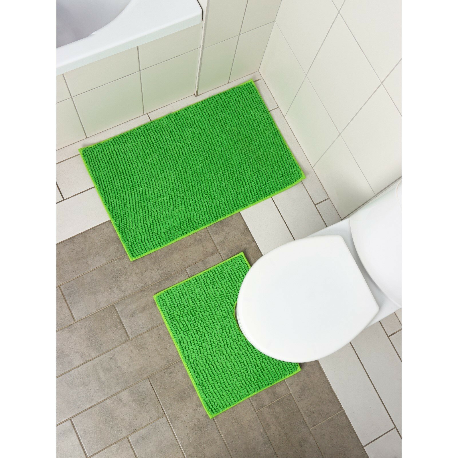Коврики для ванной и туалета Доляна «Букли», 2 шт: 40×50 см, 50×80 см, цвет зелёный