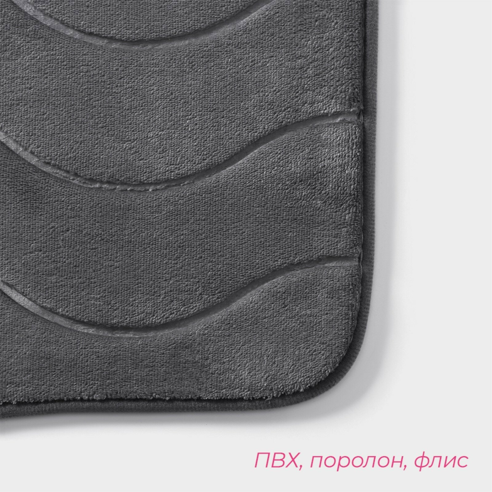 Набор ковриков для ванной и туалета Доляна "Волна", 2 шт, 40х50, 50х80 см, цвет серый (2987449)