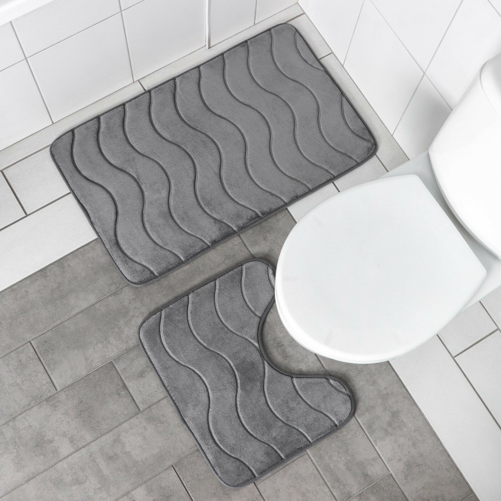 Набор ковриков для ванной и туалета "Волна", 2 шт: 40x50, 50x80 см, цвет серый