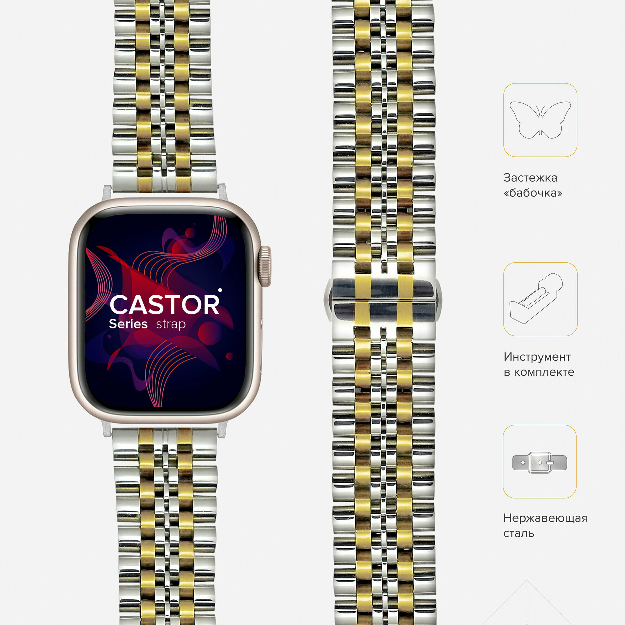Ремешок из нержавеющей стали для Apple Watch 38/40/41 mm LYAMBDA CASTOR DS-APG-04-40-SG Silver/Gold