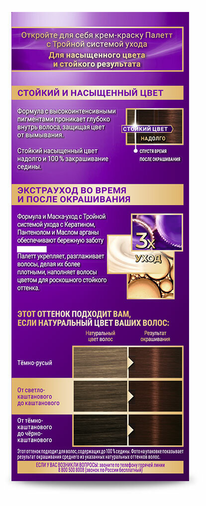 СохранитьКрем-краска для волос Palette Стойкая, тон WN3, Золотистый кофе интересное:
