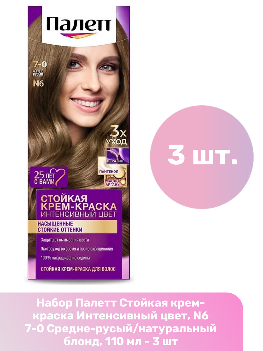 Купить Палетт Стойкая крем-краска Интенсивный цвет, N6 7-0 Средне-русый/натуральный блонд, 110 мл - 3 шт