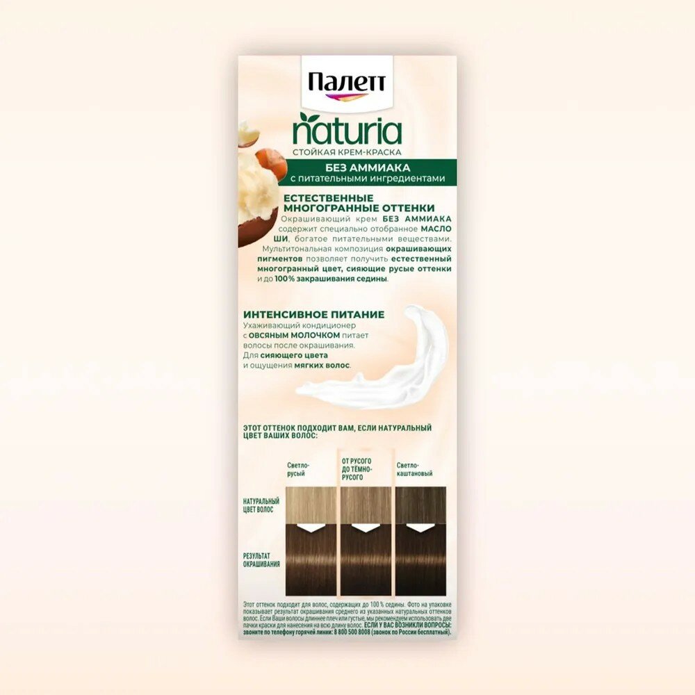 Палетт Naturia Стойкая крем-краска для волос, 6-0 Темно-русый, 110 мл - 3 шт