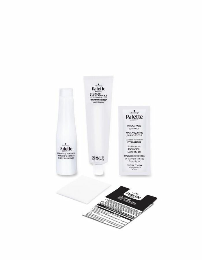 | Отзыв: | В состав краски входит тюбик с самой крем-краской, проявляющая эмульсия, перчатки, маска для ухода за волосами после окрашивания и инструкция.