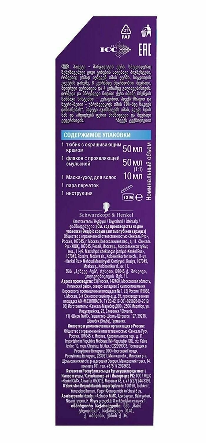 | Плюсы: | Краска от Schwartzkopf Palette довольно известная, разрекламированная. В этот раз по акции цена была чуть дороже 100 рублей.