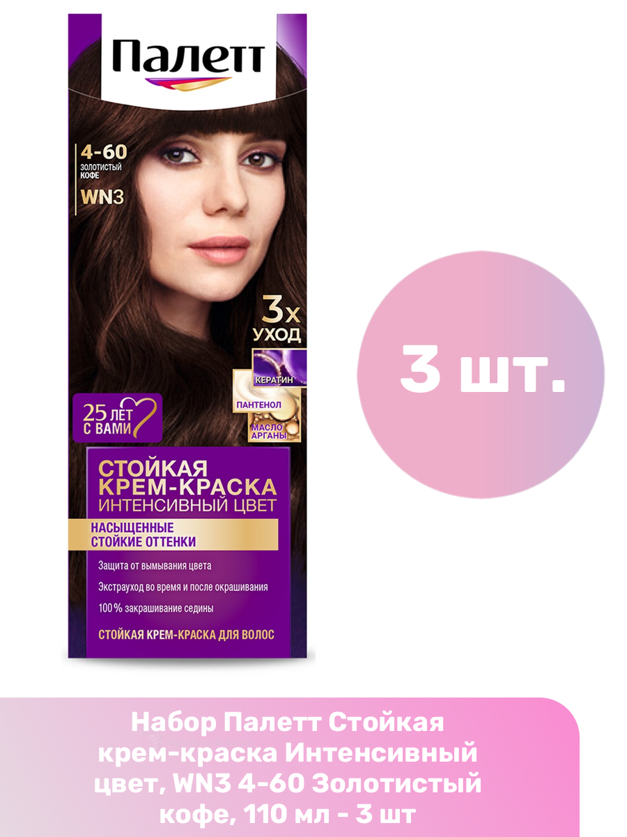 СохранитьПалетт Стойкая крем-краска Интенсивный цвет, WN3 4-60 Золотистый кофе, 110 мл - 3 шт интересное: