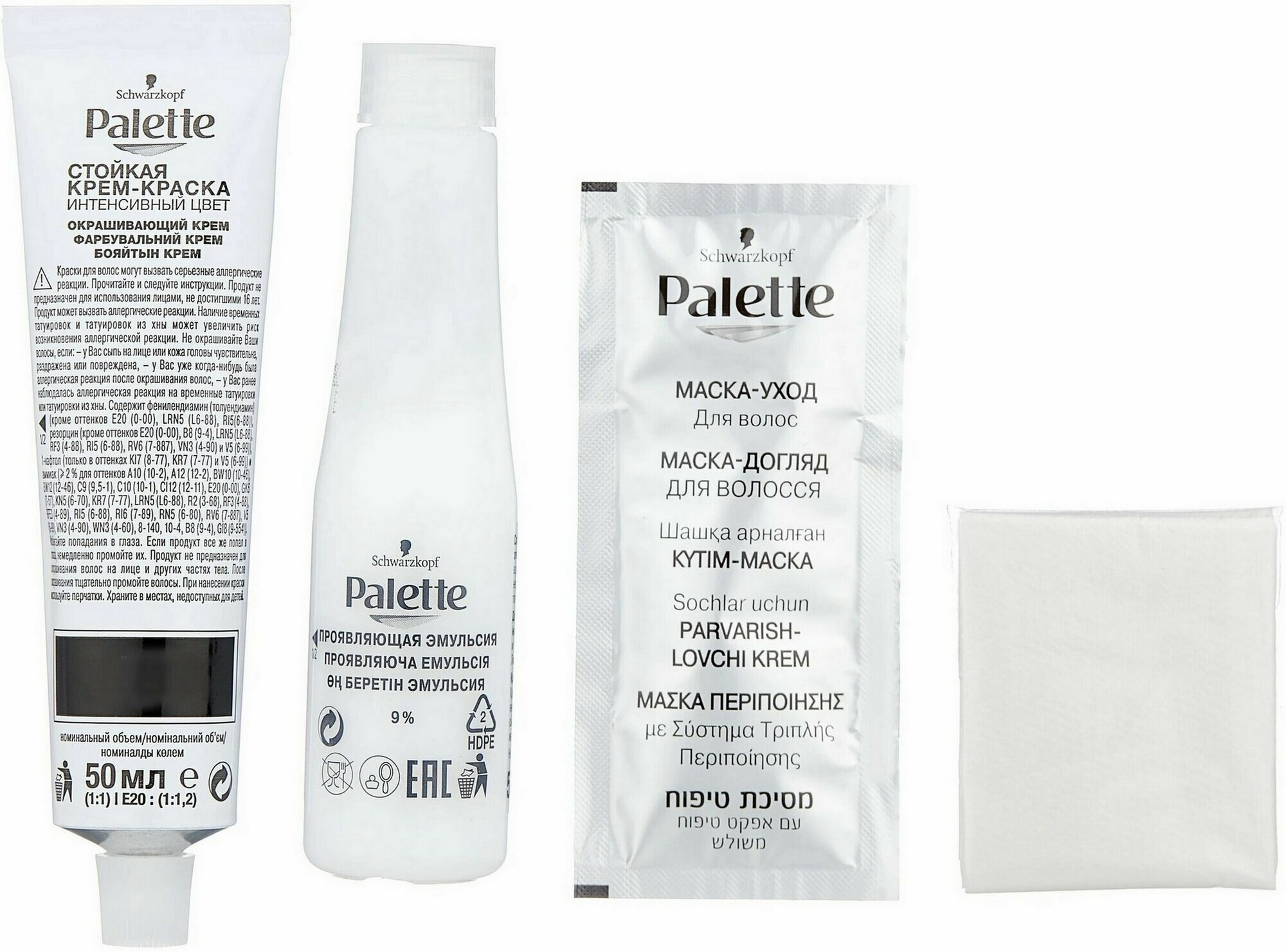 Palette Крем-краска стойкая для волос Интенсивный цвет 1-0 Черный, 110 мл, 3 шт