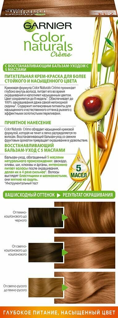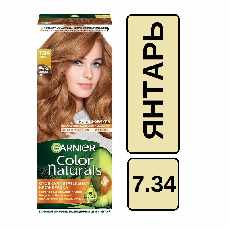 Купить Garnier Стойкая питательная крем-краска для волос Color Naturals, оттенок 7.34 Янтарь