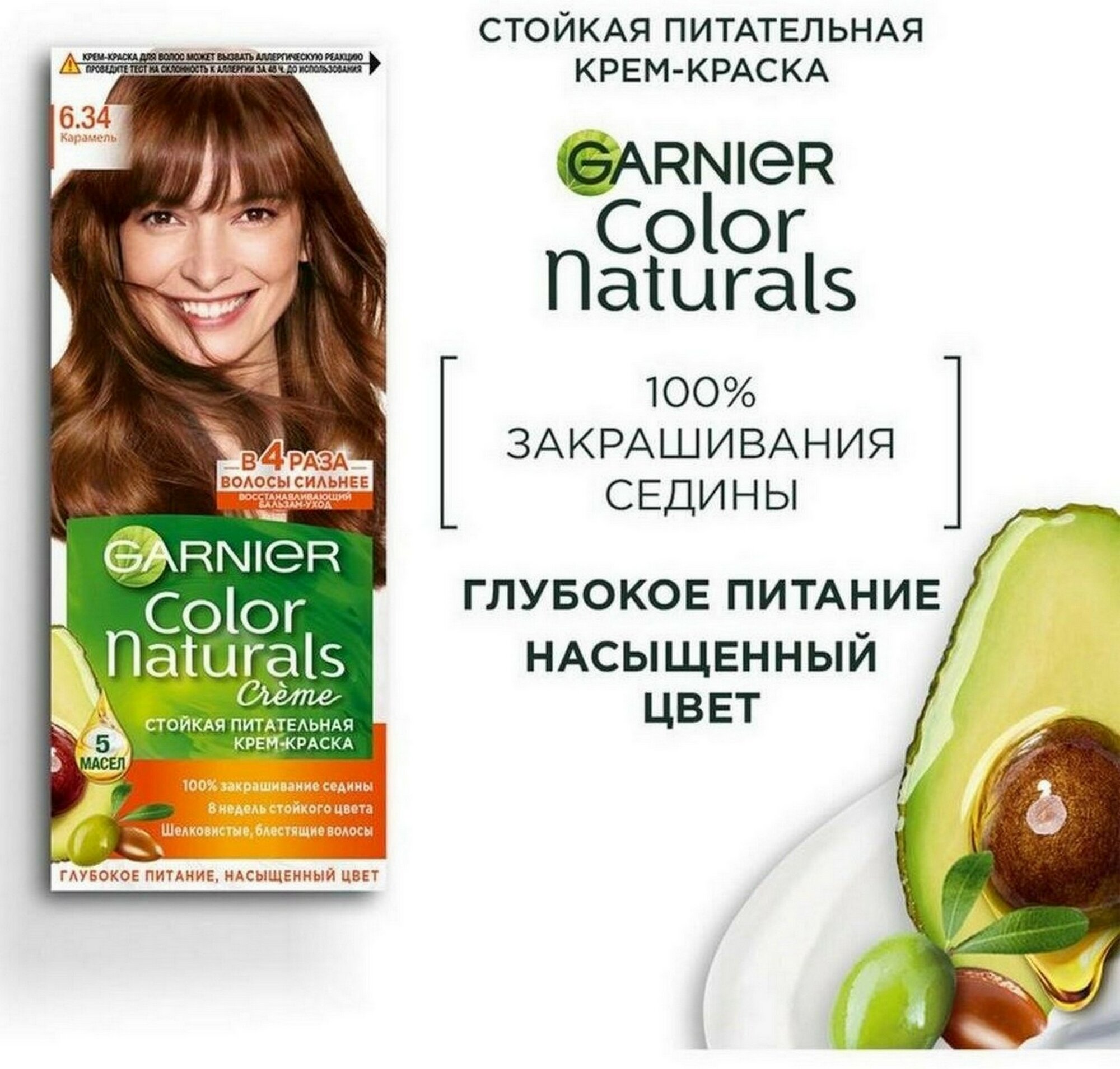 Купить GARNIER Color Naturals стойкая питательная крем-краска для волос 6.34 Карамель, 110 мл - 6 шт