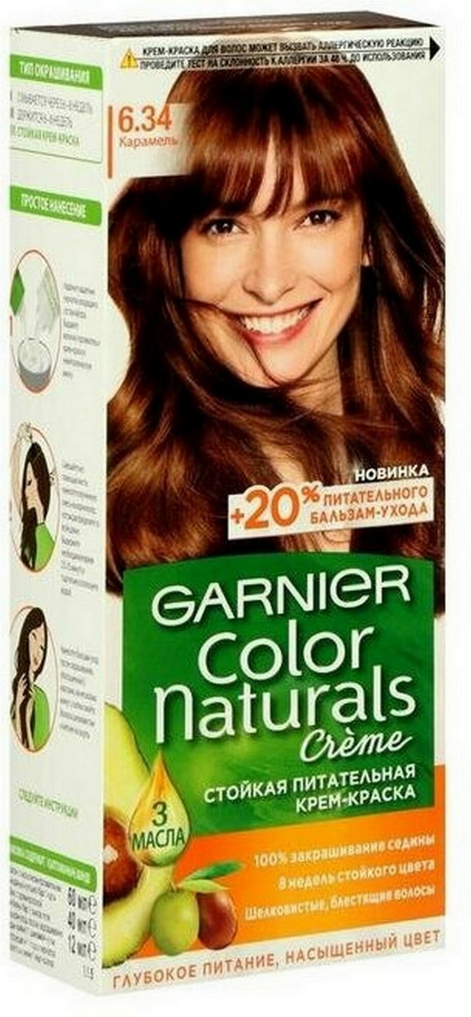 Garnier Крем-краска стойкая для волос Color Naturals 6.34 Карамель, 112 мл, 1 шт