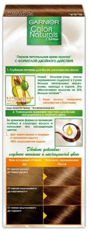 Крем-краска для волос, Garnier, Color Naturals, 4 каштан, 110 мл