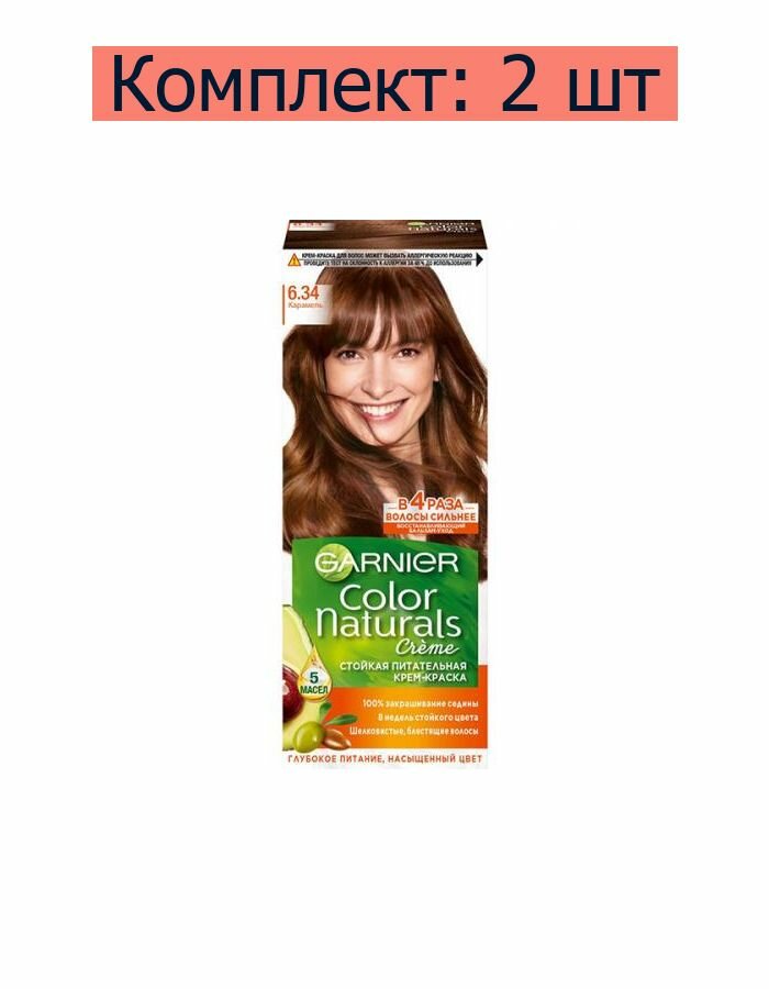 Купить GARNIER Color Naturals стойкая питательная крем-краска для волос 6.34 Карамель, 110 мл - 2 шт