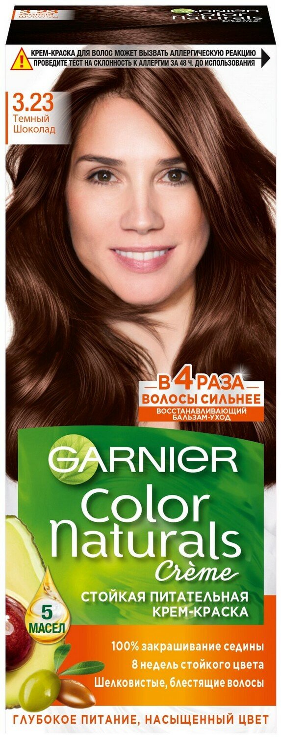 Крем-краска для волос Garnier Color Naturals с 3 маслами, тон 3.23, Темный шоколад