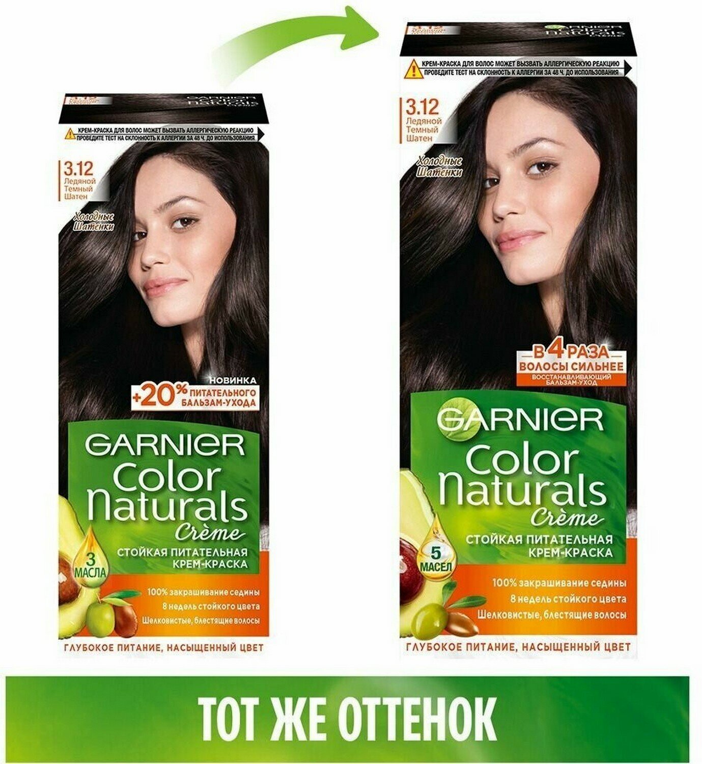 GARNIER Color Naturals стойкая питательная крем-краска для волос, 3.12, Ледяной темный шатен 110 мл - 3 шт