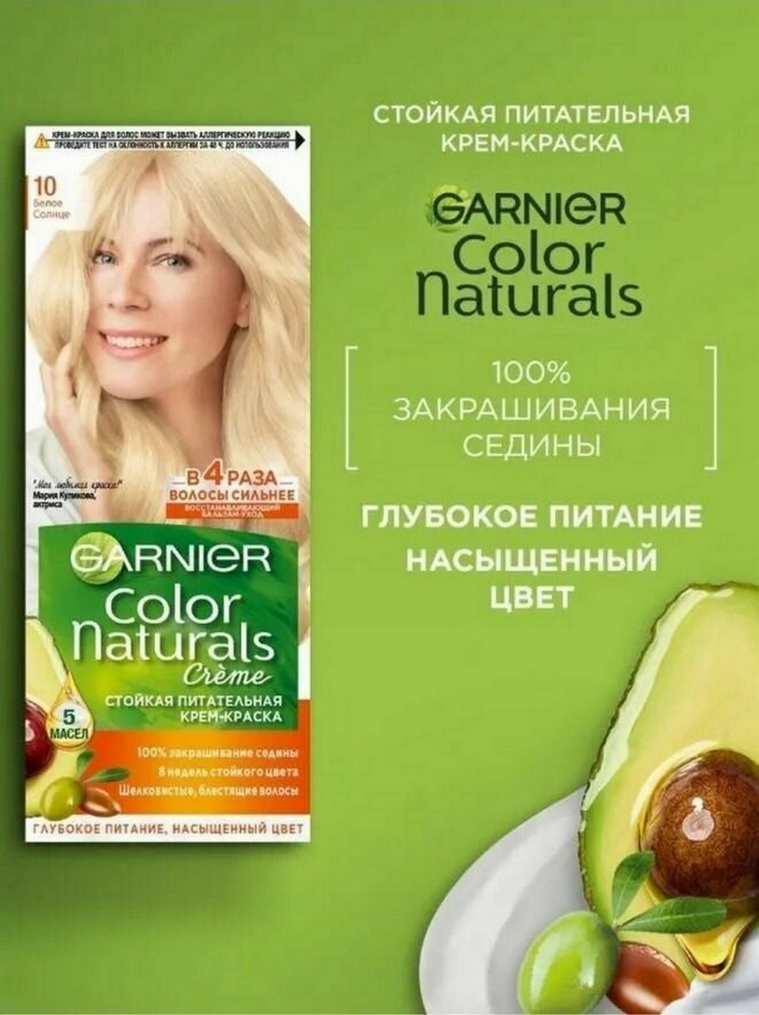 Крем-краска для волос Garnier Color Naturals с 3 маслами, тон 10, Белое солнце