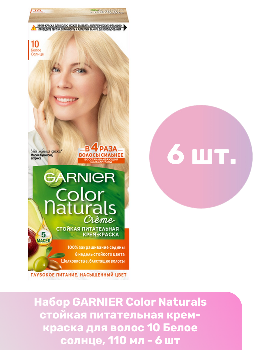 Купить GARNIER Color Naturals стойкая питательная крем-краска для волос 10 Белое солнце, 110 мл - 6 шт