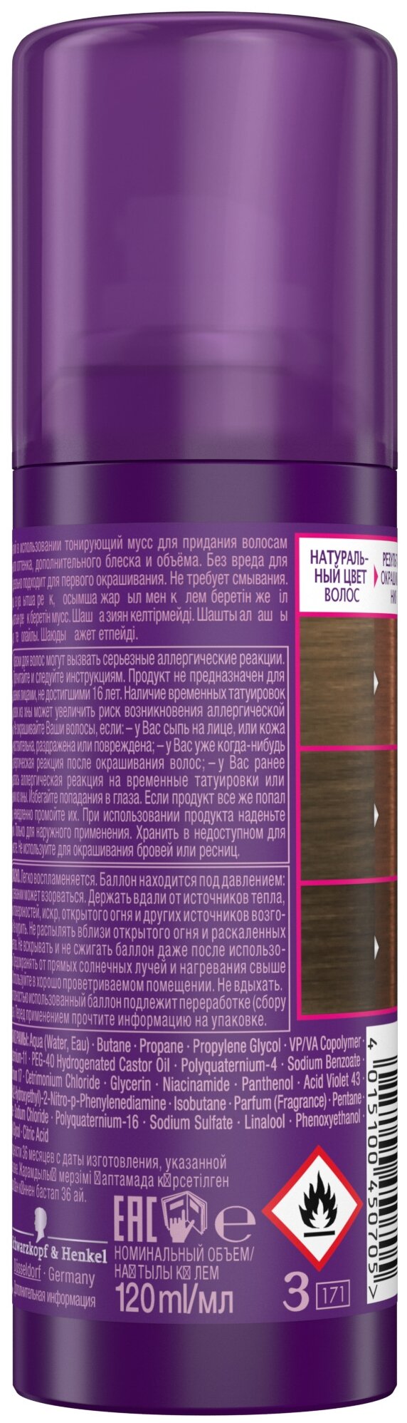 Тонирующий мусс 3-в-1 Perfect Mousse, Каштановый, временное тонирование, 120 мл