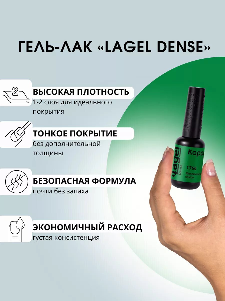 Гель-лак LAGEL DENSE для ногтей KAPOUS PROFESSIONAL 1766 мексиканский кактус 8 мл