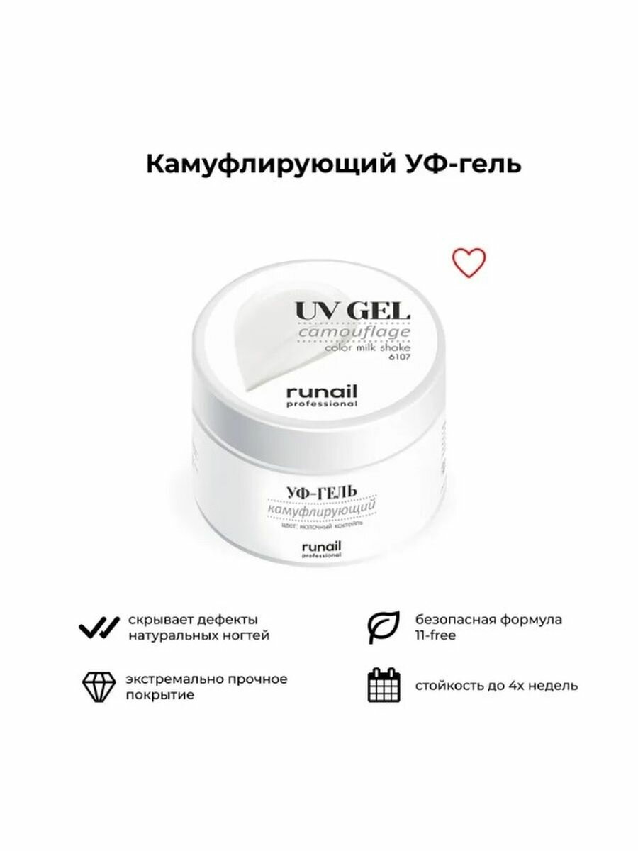 Камуфлирующий УФ-гель Runail Professional № 6108 Молочный коктейль, 30 г
