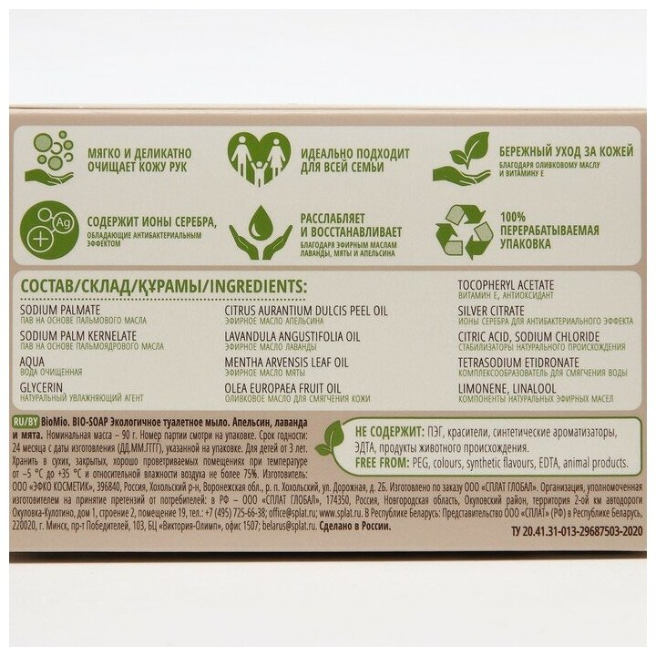 Туалетное мыло BioMio BIO-SOAP апельсин, лаванда и мята, 90 г 520.04188.0101
