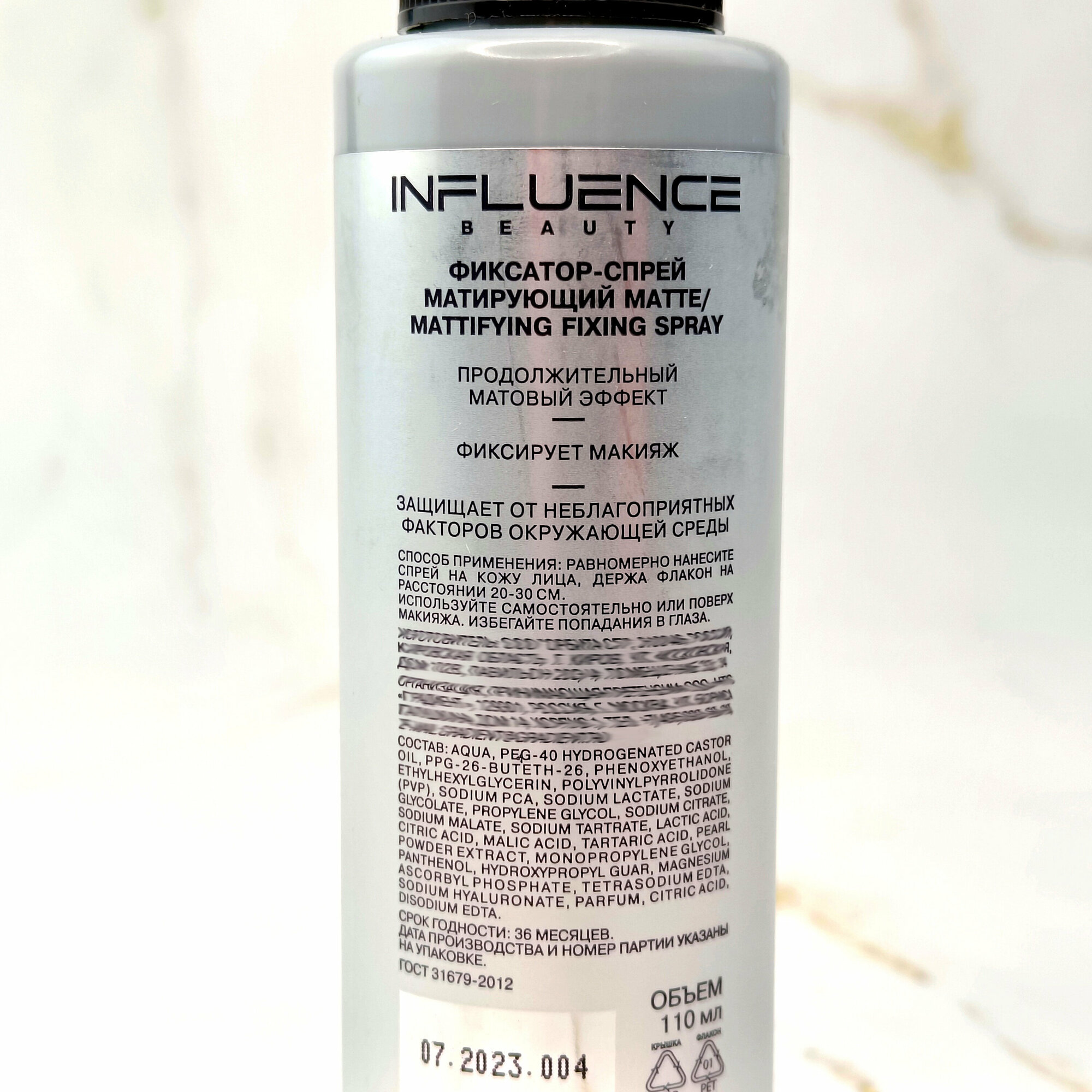 INFLUENCE BEAUTY Фиксатор-спрей для лица матирующий Matte с антиоксидантным действием, 110 мл, Прозрачный