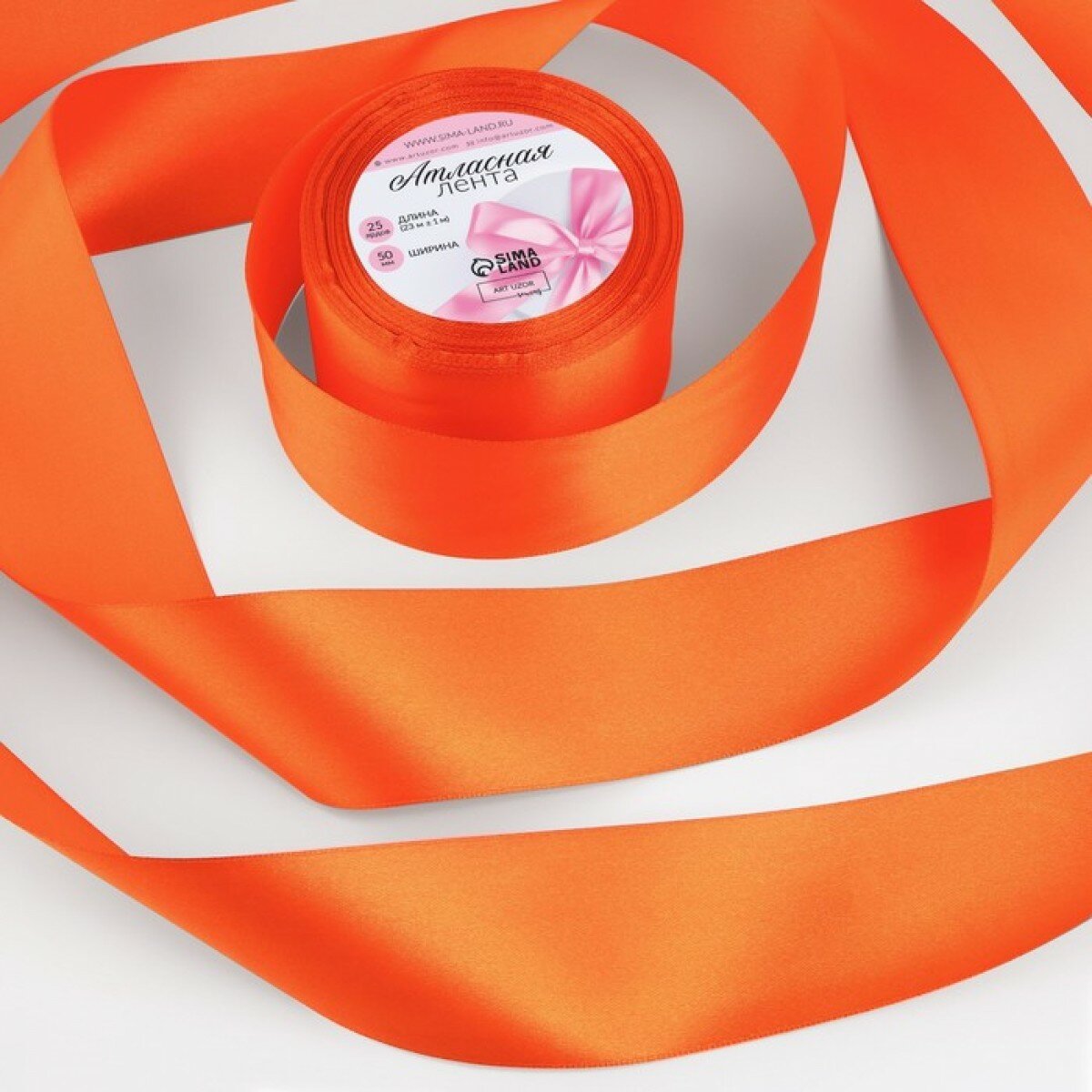 Лента атласная, 50 мм × 23 ± 1 м, цвет ярко-оранжевый №25 (арт. 1218441)
