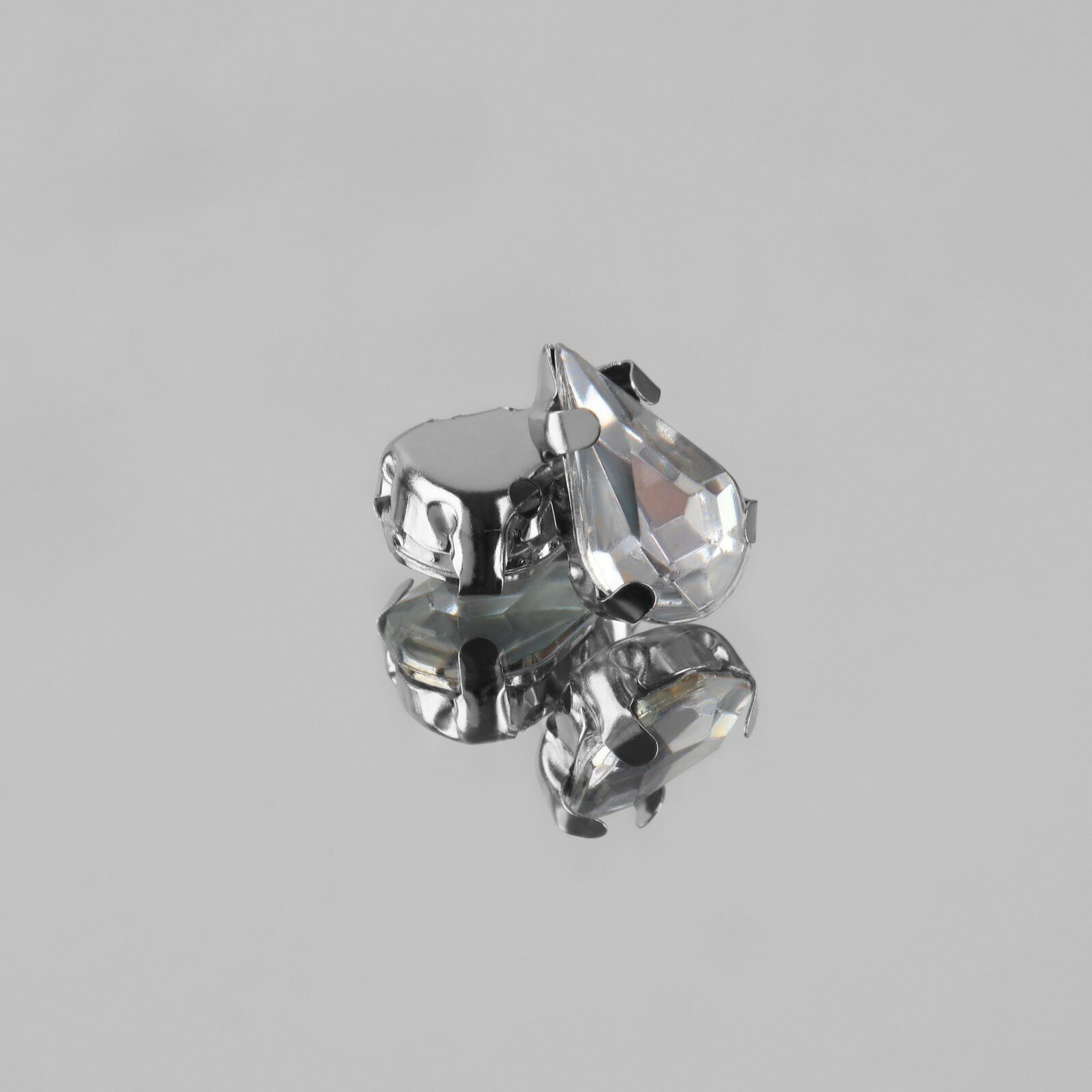 Стразы пришивные "Капля", в оправе, 6 x 10 мм, 50 шт, цвет белый./В упаковке шт: 1