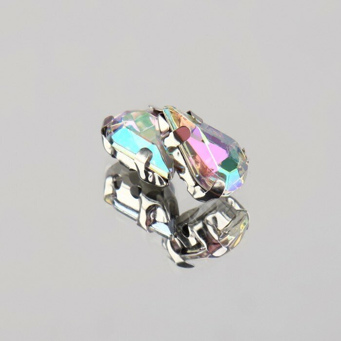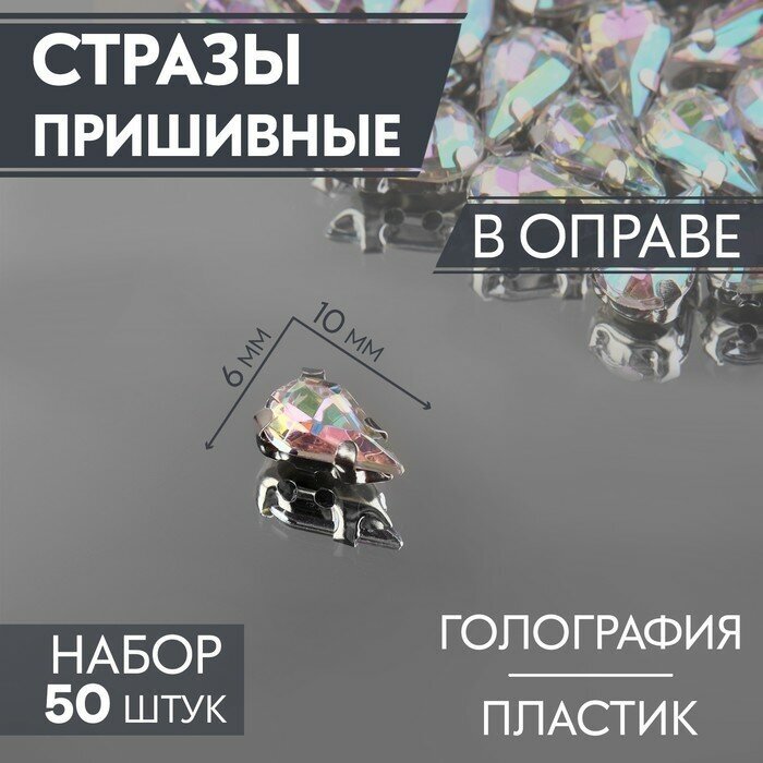 Стразы пришивные Капля, в оправе, с голографией, 6 10 мм, 50 шт