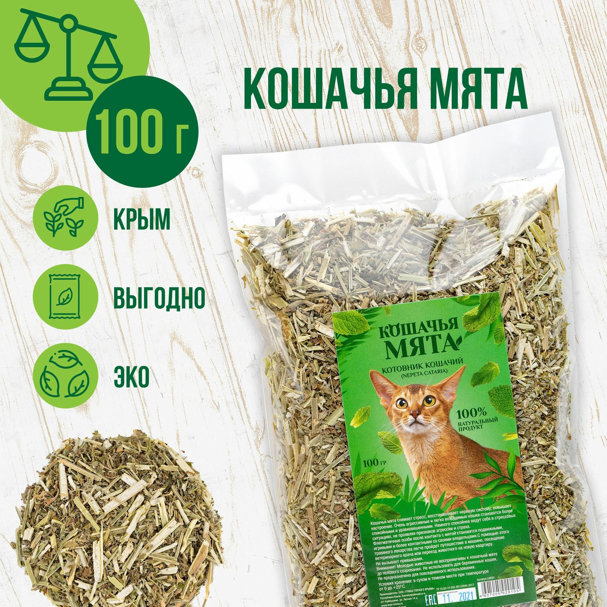 Лакомство для кошек товары для животных Кошачья мята, Травы горного Крыма, 100 гр