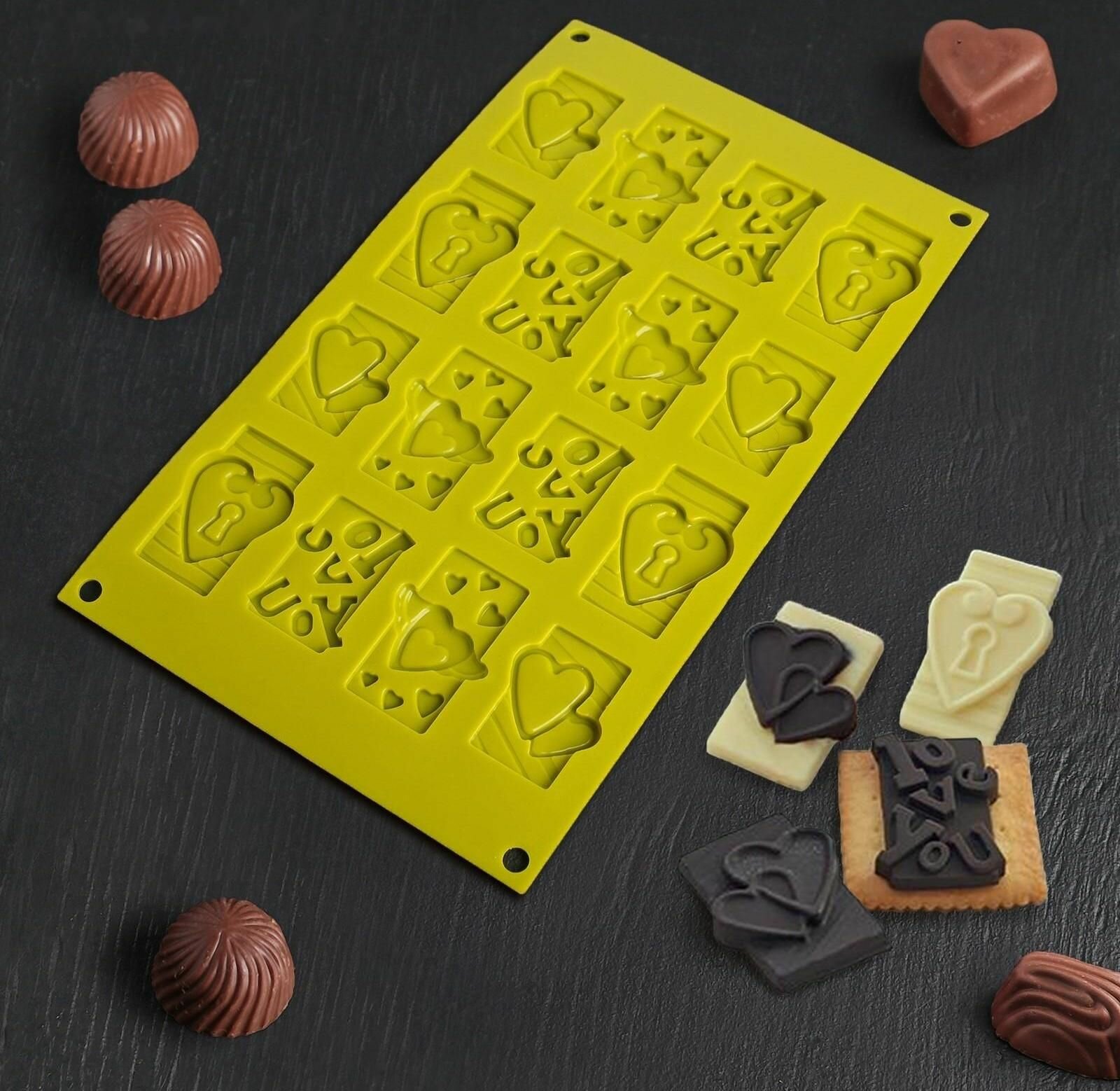 Форма для конфет и шоколада Доляна «Любовь», силикон, 28,7×17,4 см, 16 ячеек (4,7×3,8 см), цвет микс