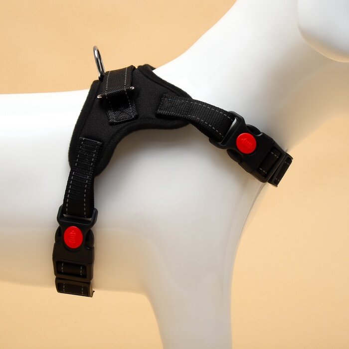 Шлейка мягкая со светоотражающими элементами, размер S (ОШ 29-31 см, ОГ 37-45 см), чёрная