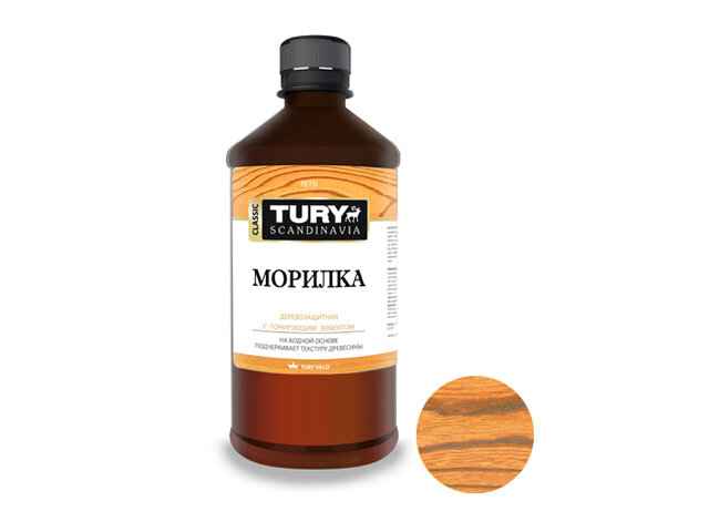 Морилка водная деревозащитная Tury, лиственница, 0.5 л