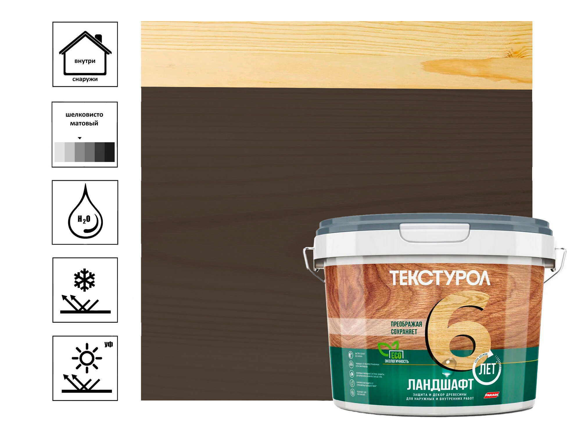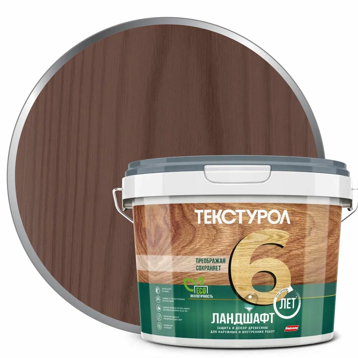 Защитное покрытие для древесины Ландшафт Текстурол 9 л палисандр шелковисто-глянцевая
