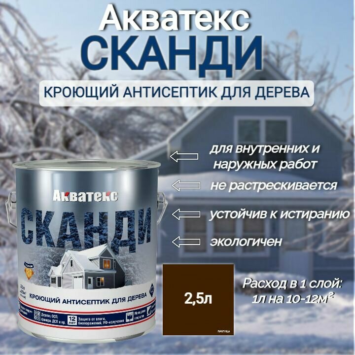 Акватекс сканди Антисептик для дерева, кроющий, полуматовый, лакрица 2,5 л 202912