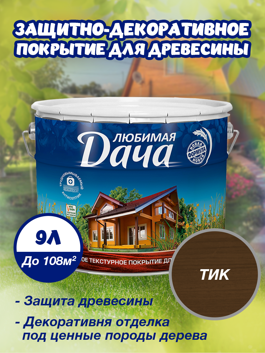 Купить Антисептик Любимая Дача 9л Тик Защитно-Декоративное Покрытие для Древесины.