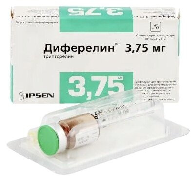 Диферелин, лиофилизат для приготовления суспензии для в/м введения пролонг. действия 3.75 мг комплект, 1 шт.