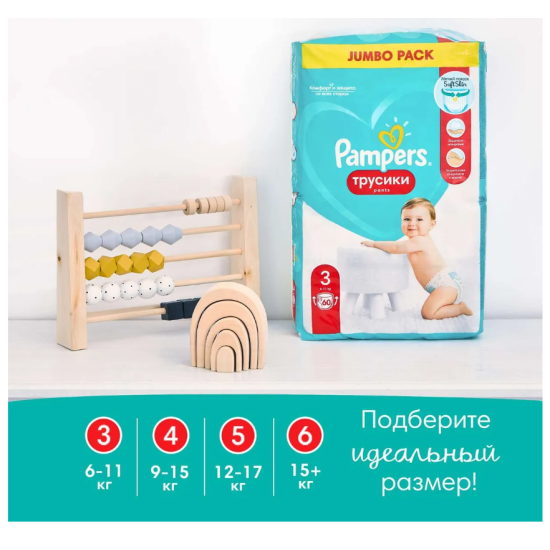 Трусики Pampers Pants, для малышей 9-15 кг, размер 4, 52 шт.