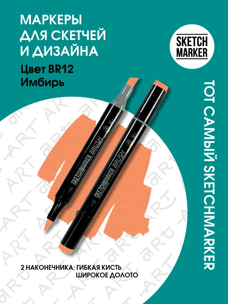 Двусторонний заправляемый маркер SKETCHMARKER Brush Pro на спиртовой основе для скетчинга, цвет: BR12 Имбирь