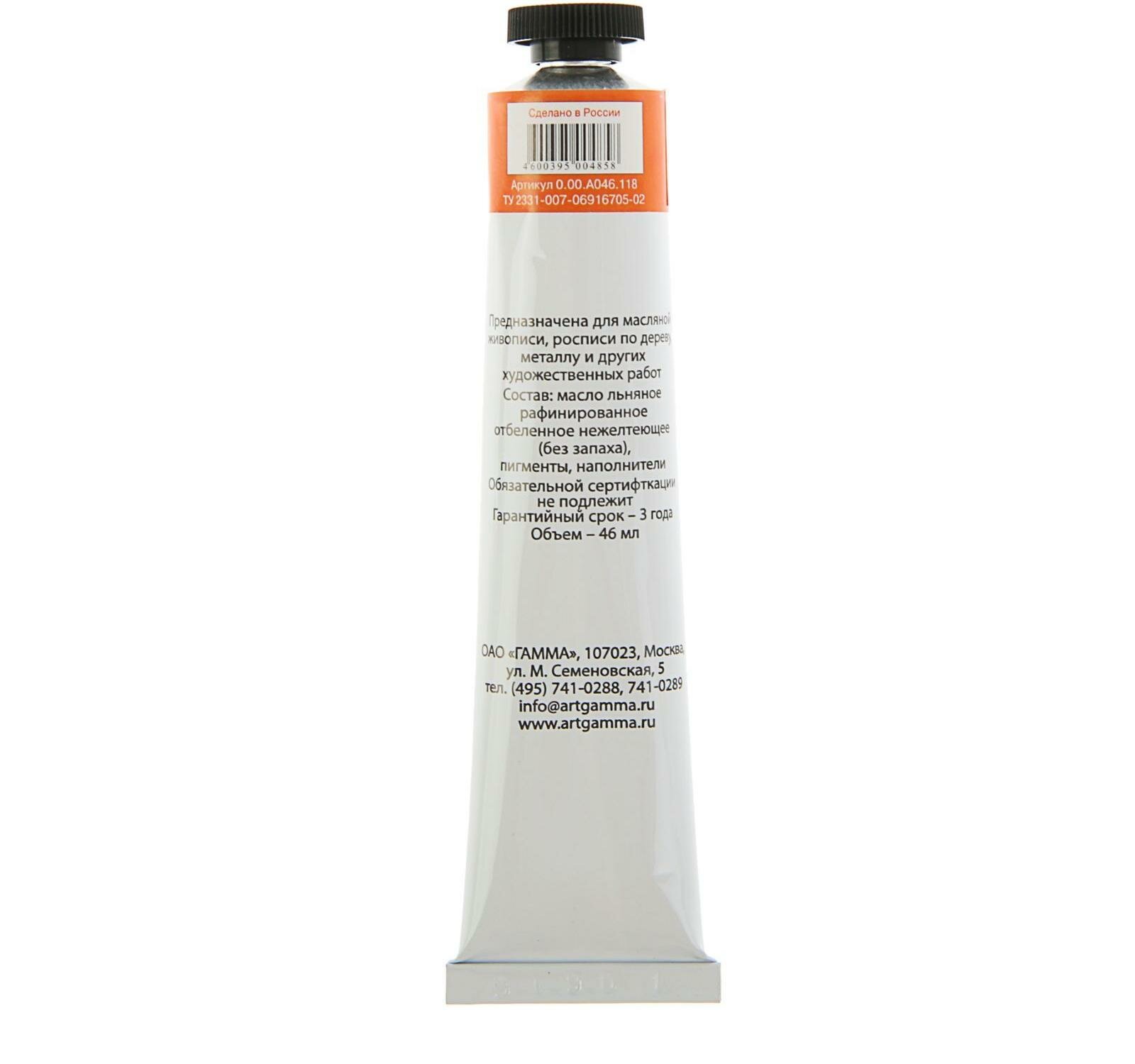 Гамма Краска масляная художественная "Студия", 46мл, туба, кадмий оранжевый (имит.)