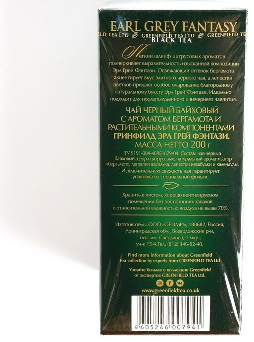 Чай черный листовой Greenfield Earl Grey Fantasy (Гринфилд Эрл Грей Фэнтази), 200 г 5