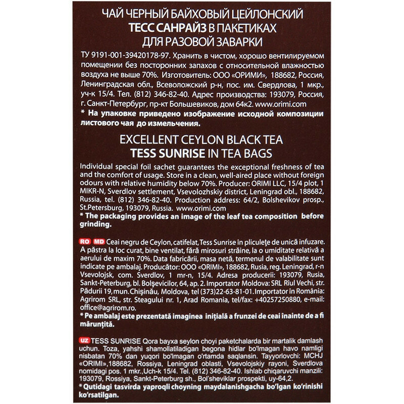 Купить Чай черный Tess Sunrise в пакетиках 1,8 г х 25 шт